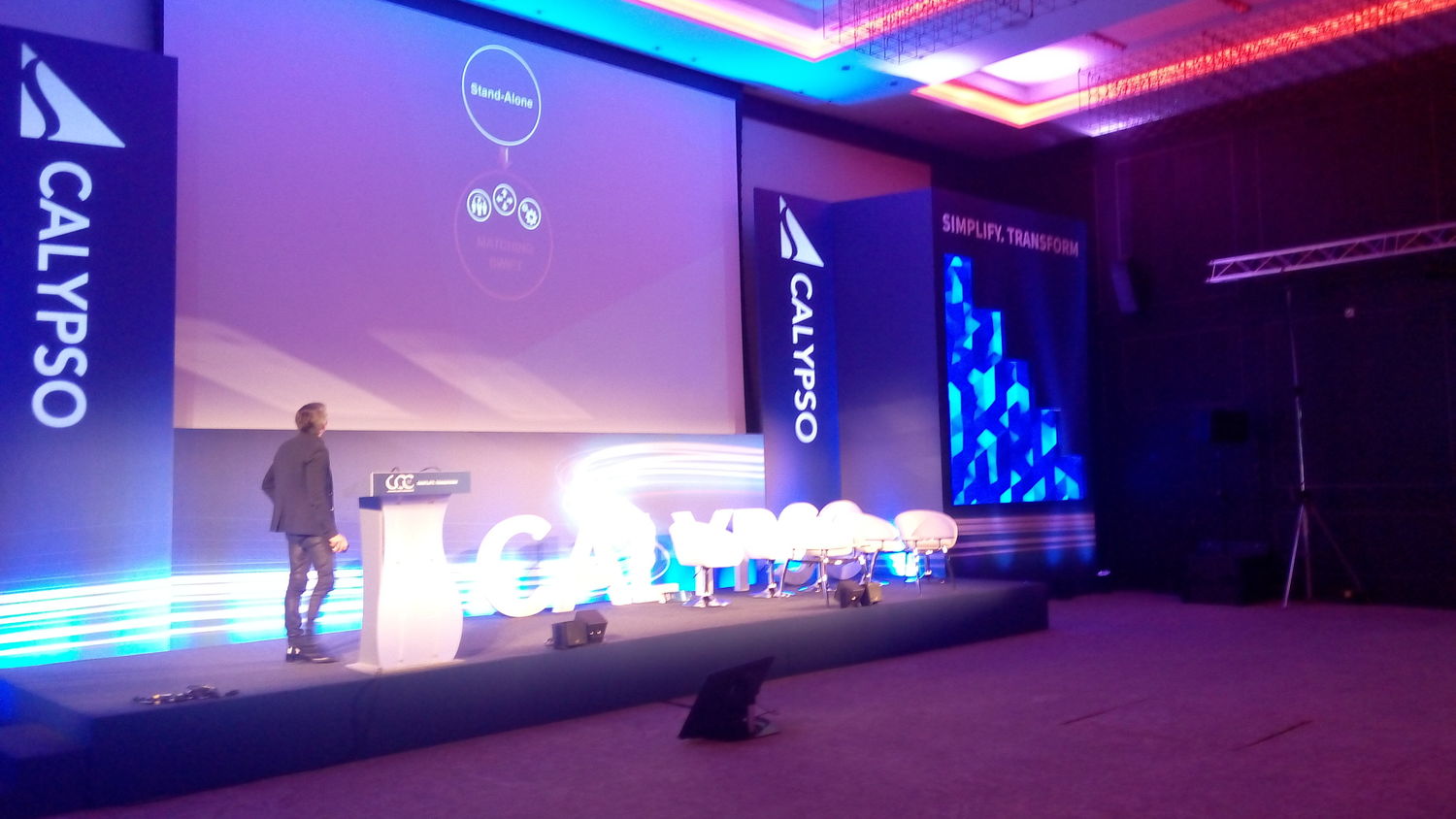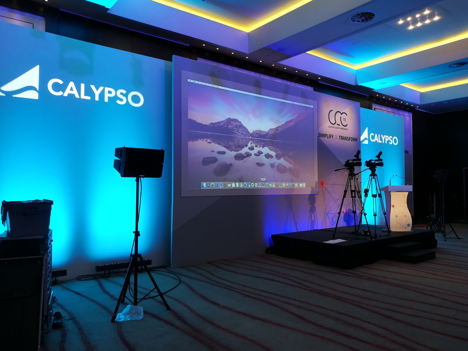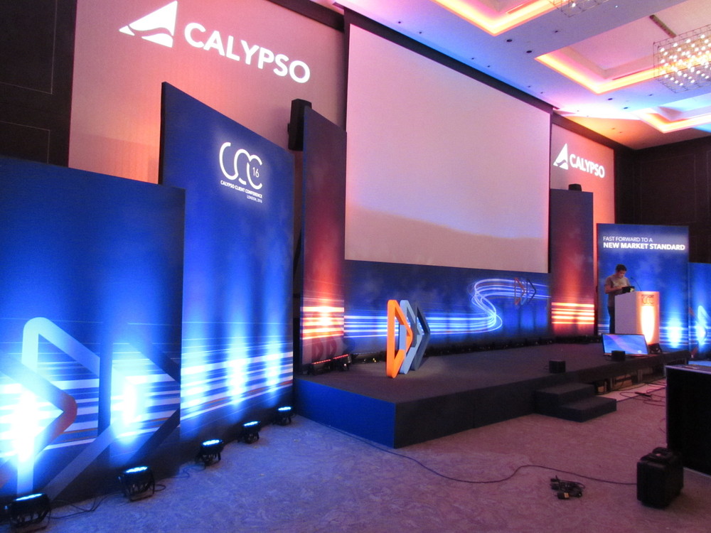 Technology company Calypso held client conferences at the Hilton Hotel and Park Plaza Riverbank, London. SCG manufactured and installed the presentation set, breakout sets and interactive pods, plus registration areas and provided the graphics to client specification.