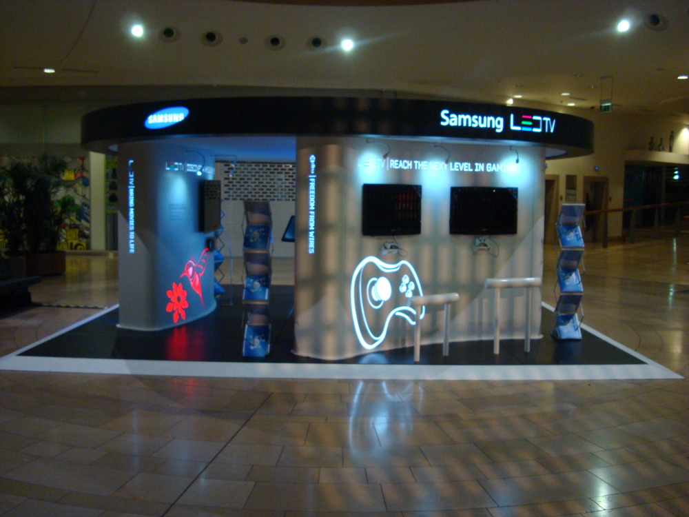 Cutting edge multinational technology company, Samsung, required a touring exhibition stand to promote their products in shopping centres around the UK - SCG built the stand to the high specification provided by the creative agency.