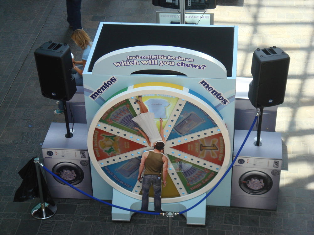 A spinning wheel for the public to win prizes was built for Mentos when they required a touring stand to promote their mint products. The stand which spun and lit up toured various shopping centres around the UK.